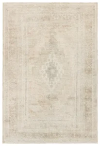 The Adorn design features a traditional medallion motif, set against a warm tan and beige backdrop with subtle accents. Its vintage, distressed look adds character and charm, making it feel like a cherished heirloom from the very first step.