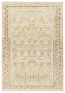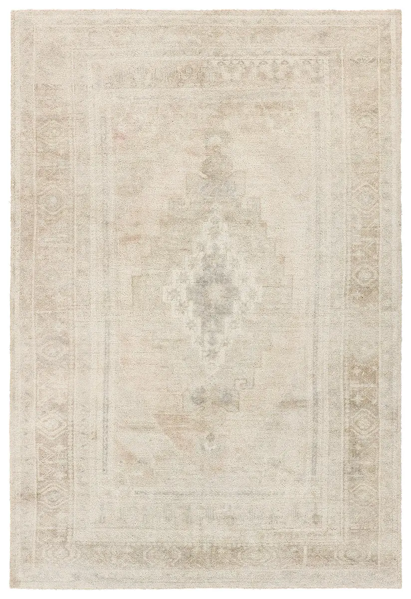 The Adorn design features a traditional medallion motif, set against a warm tan and beige backdrop with subtle accents. Its vintage, distressed look adds character and charm, making it feel like a cherished heirloom from the very first step.